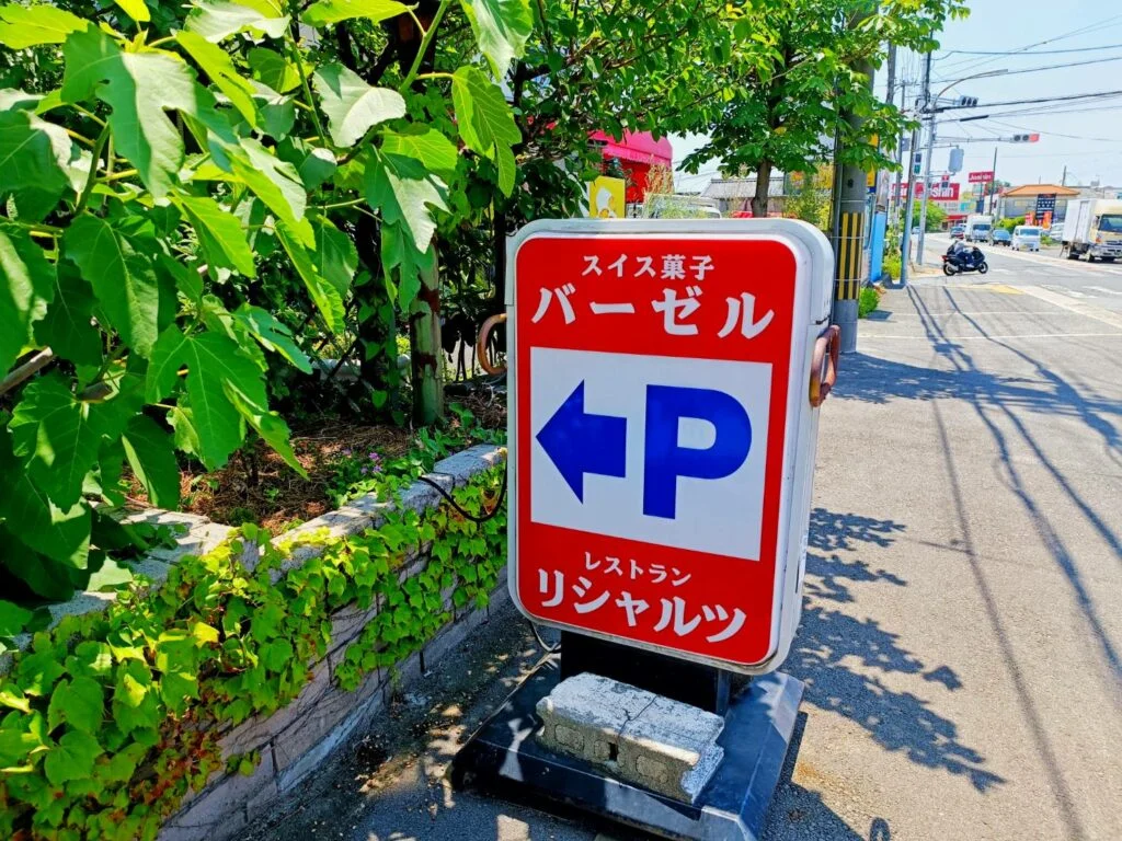 看板は小さくて見にくいので、建物を目印にした方がいいです。