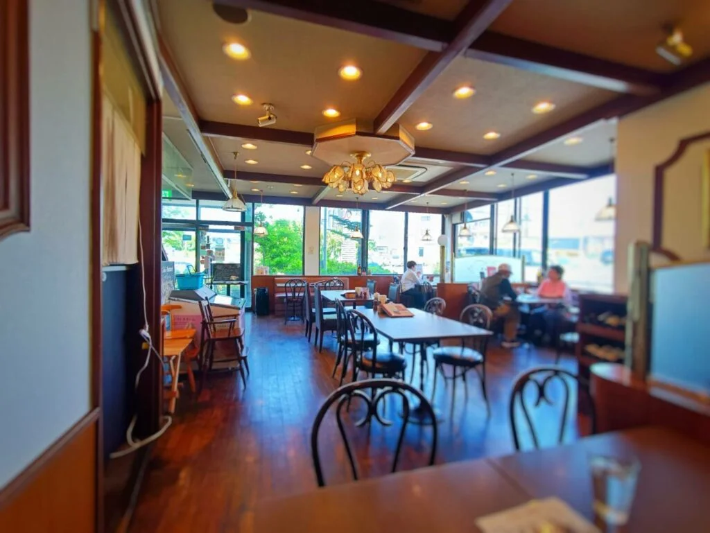 1階店内奥からの眺めで、座席間隔はかなり広めに取ってあります。