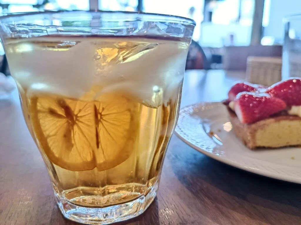 バーゼルセットでチョイスした いちごのタルトとアイスティー。