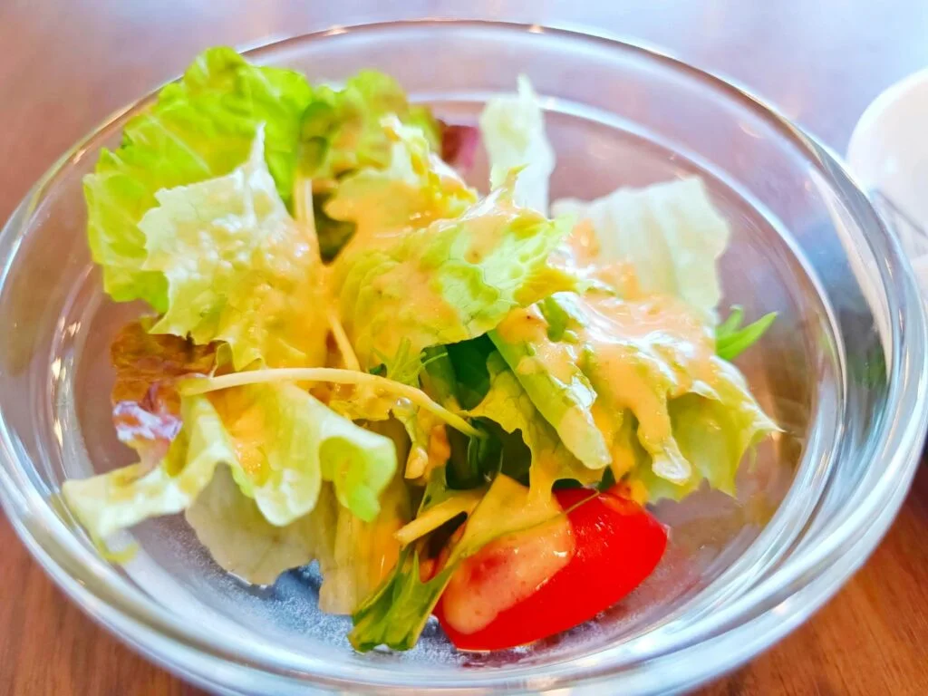 セットのサラダは可愛いサイズでちょうどいい量です。