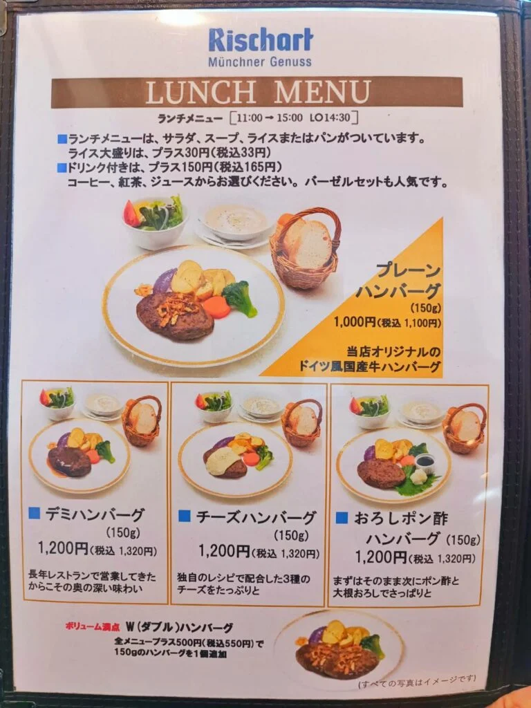 「リシャルツ」のハンバーグメニュー・価格